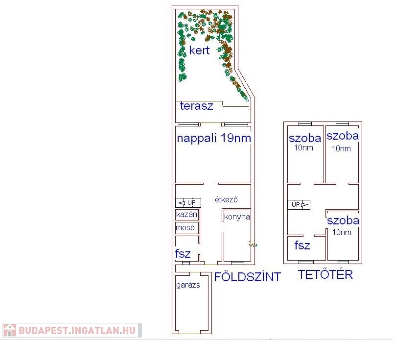 Tetőtérben: 3db 10nm szoba, fürdőszoba található.