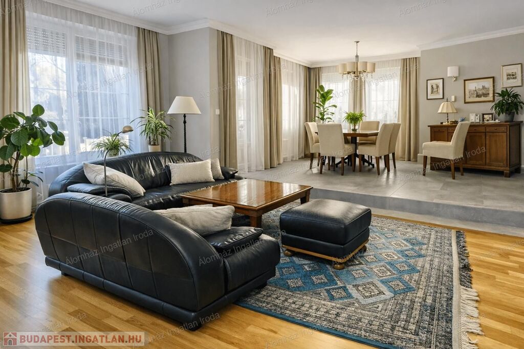 389 m²-es, 7 szobás, kiváló elosztású ikerházfél 550 m²-es saját, körbejárható kerttel.