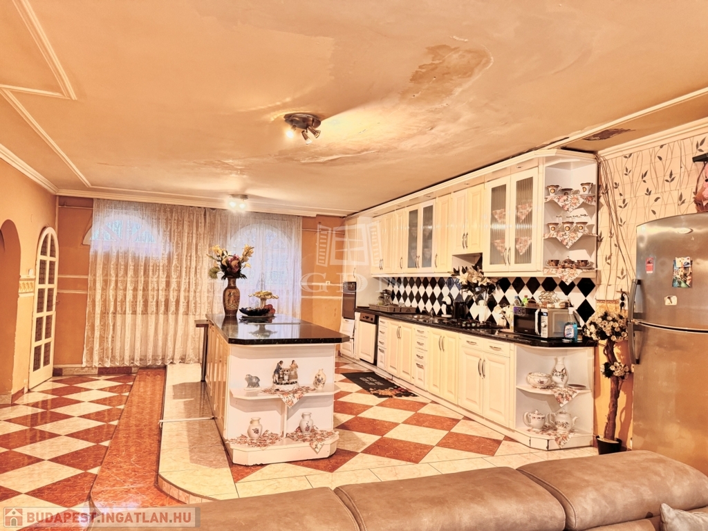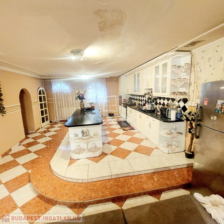 – Fél-szuterén szint: 2,6 m belmagasság, óriási nappali-ebédlő, konyha, fürdő, szoba