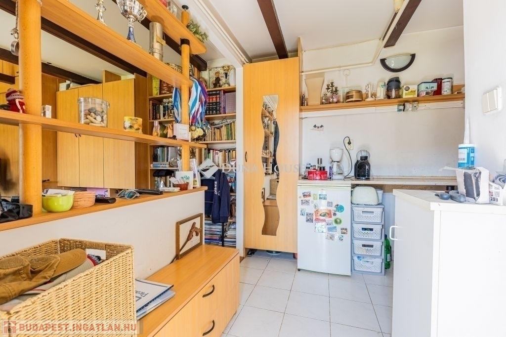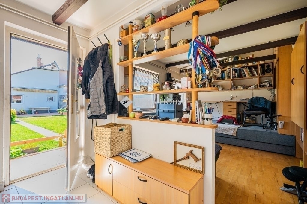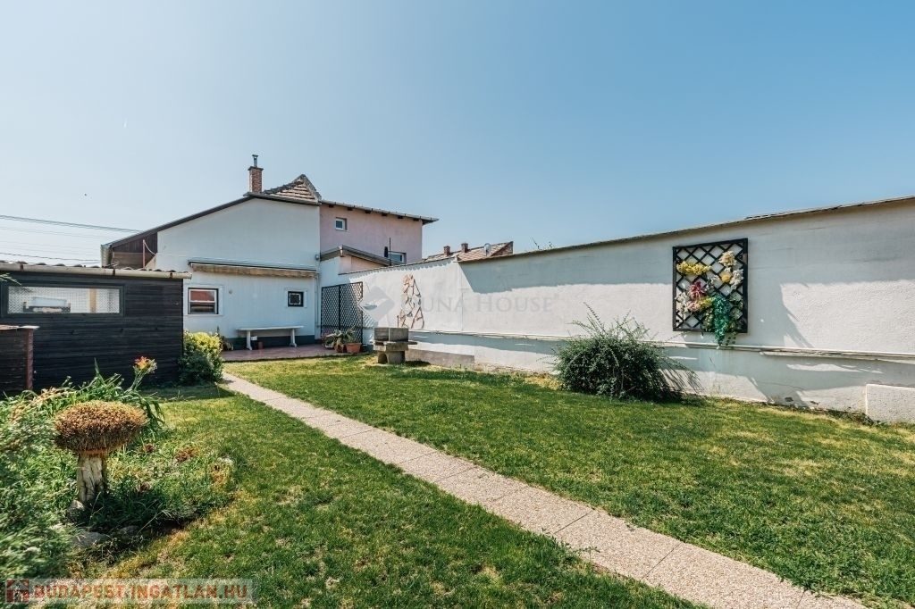 Eladó a 15. kerület közkedvelt részén, csendes utcában, egy 356 m2-es telken lévő 71 m2-es, két szobás + egy 35 m2-es ház! Az ingatlan 2 generáció összeköltözésére is alkalmas, mert a telken van egy kiváló állapotú, szigetelt, 71 m2-es ház (2 szoba, konyha-étkező és fürdőszoba), valamint egy lakható állapotú, 35 m2-es ház (egy szoba, konyha, fürdőszoba) is. A telek teljesen körbe kerített. Található rajta egy könnyűszerkezetes garázs. A kertben grillező és terasz található. A kert mérete alapján egy medence is kivitelezhető. Fűtése: gáz-cirkó. Légkondicionálóval felszerelt.