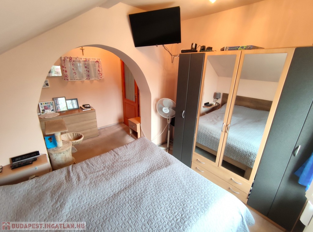 Az tetőtéri lakás 2017-ben lett kialakítva, szép beltéri és kültéri nyílászárókkal, gépesített konyhával, új kádas és zuhanyzós fürdővel, parkettával, kandallóval és 2 db hűtő-fűtő klímával. Itt minden nyílászáró modern műanyag kialakítású.