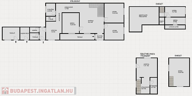 Az üzlethelyiség 41 m2, belső 2 szintes, 1 szobás, jelenleg lakásként funkcionál, de szeparálható így akár irodaként, üzletként is működhet.