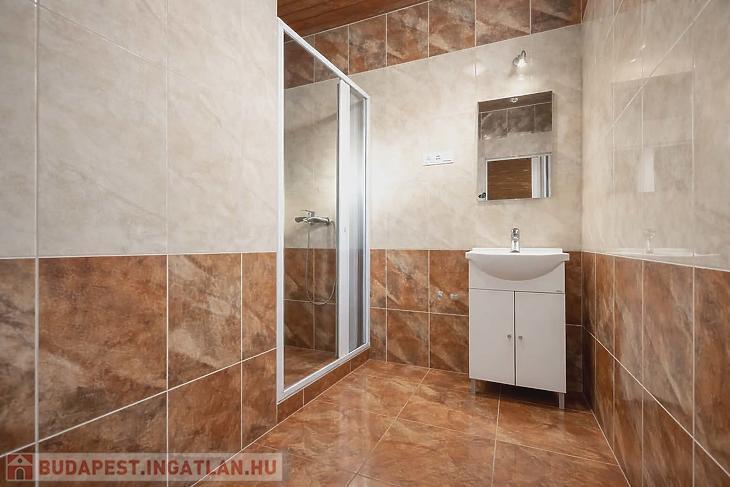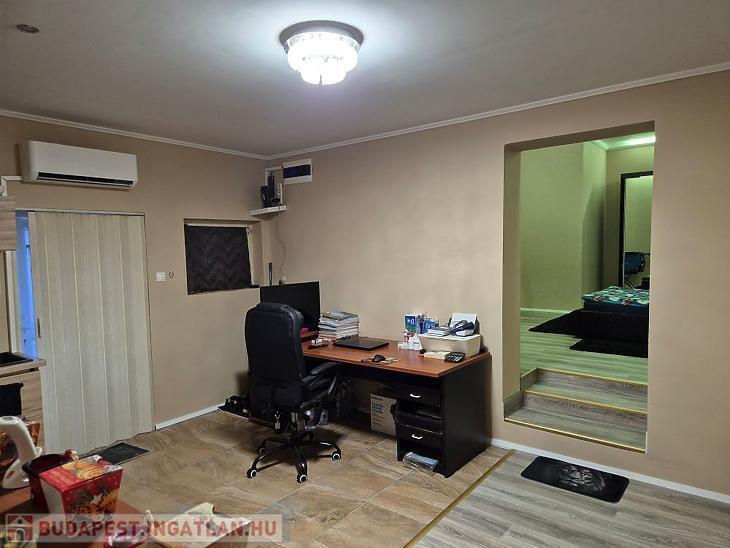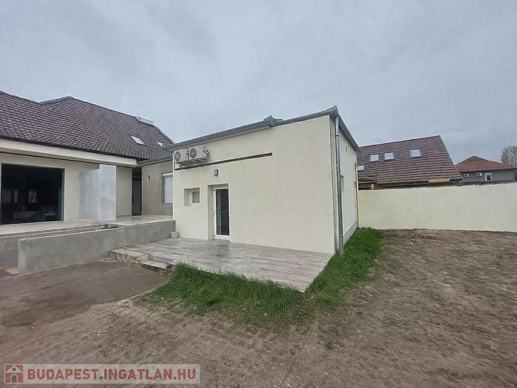 A 45 m2-részben amerikai konyhás nappali, hálószoba, fürdőszoba található, illetve terasz. Kívülről szigetelt, a villanyhálózat cserélve lett. A nyílászárók műanyagok, hőszigeteltek. A hűtés-fűtés 2 db. klímával megoldott („H” tarifa kialakítva).