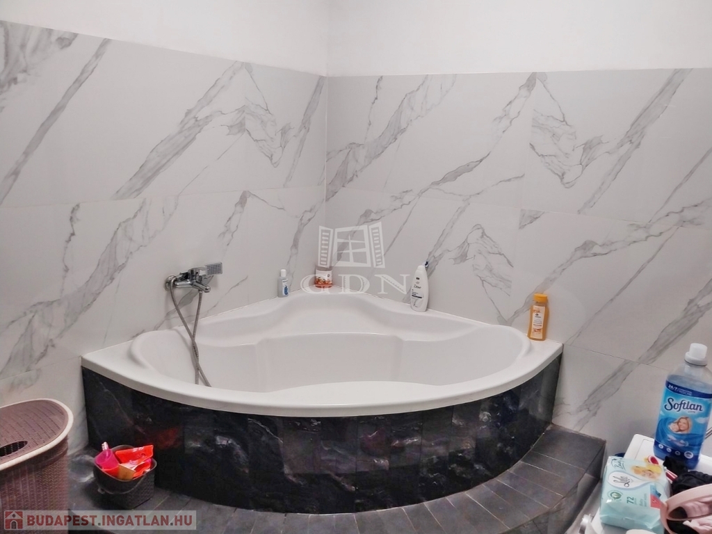 Kényelmes méretű fürdőszobája nagy sarokkádal és épített zuhanyzóval is rendelkezik emelve a komfort érzetet.