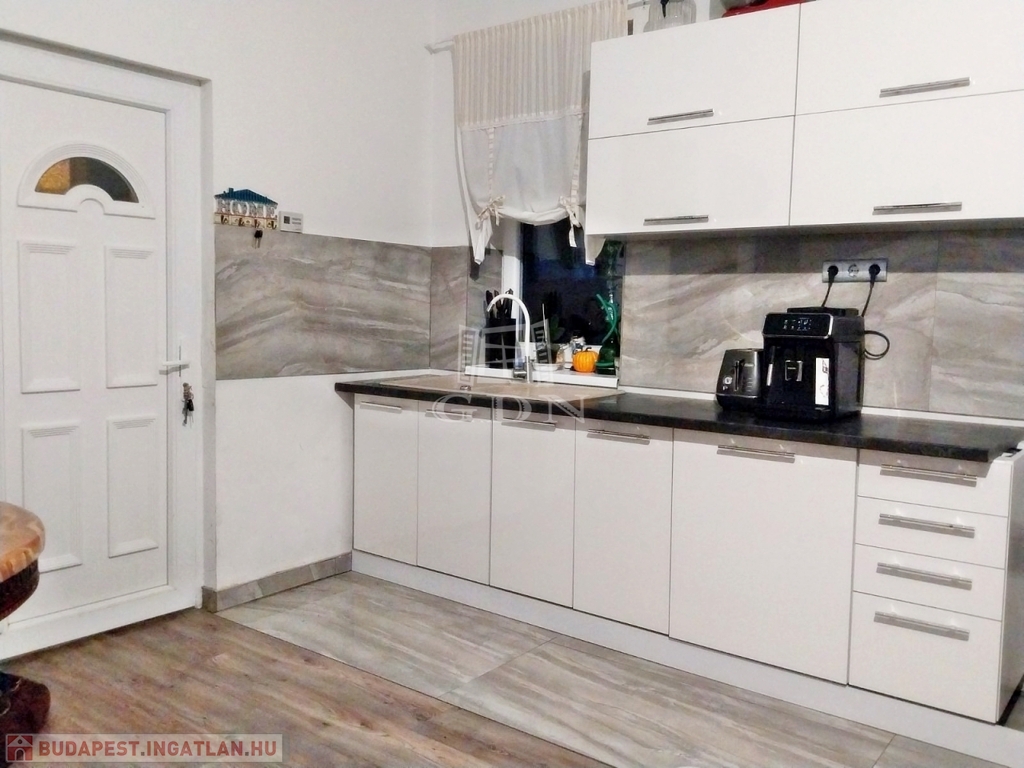 A XV. kerület csendes, kertvárosi részén eladó egy 44 nm-es házrész, amely egy használati megosztási szerződés alapján jogilag leválasztott, három külön bejáratú lakásból álló épület része.