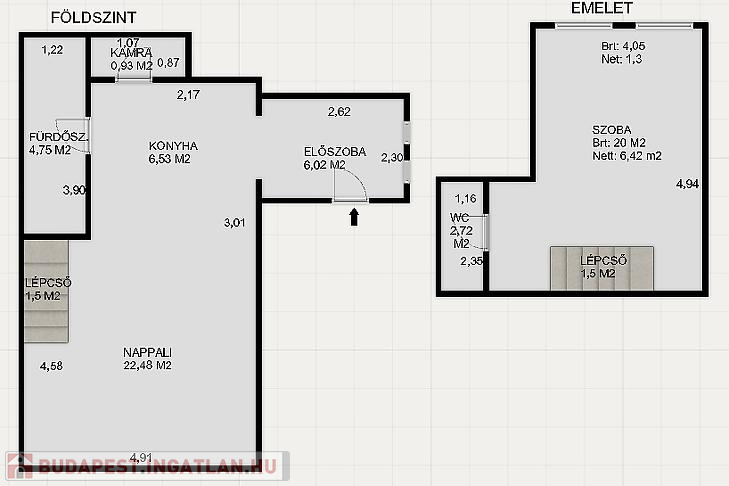 A földszinti részen konyha, szoba, kamra, kádas fürdőszoba és előszoba van, az emeleten egy szoba került kialakításra, de egy mosdó kialakítására van még lehetőség. Kb. 8 éve lett cserélték a tetőt, a villanyvezetékeket, a bejárati ajtót és az emeleti részen található nyílászárókat. A fűtést gázkonvektor biztosítja, a meleg vizet pedig villanybojler. Tartozik a házrészhez egy 100 m2 közvetlen kertkapcsolat és autóbeálló.