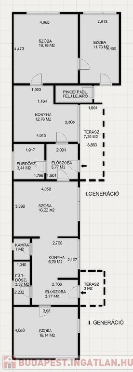 A II. generációs rész 1 szobás, konyhával, kamrával és fürdőszobával.