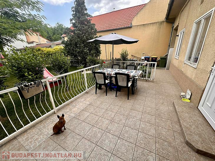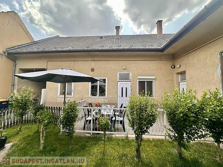 XV. KERÜLETBEN: KÖZPONTHOZ KÖZEL, CSENDES UTCÁBAN, JÓ ÁLLAPOTÚ, 61 M2, 2 SZOBÁS HÁZRÉSZ, 200 M2 KÖZVETLEN KERTKAPCSOLATTAL, 10 M2 TÁROLÓVAL, AUTÓBEÁLLÓVAL, TÁGAS TERASSZAL.