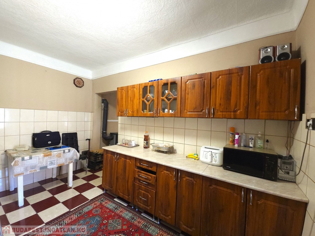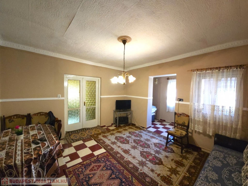 Eladásra kínálok Budapest XV. kerületében, Rákospalotán, egy 395 nm alapterületű telken álló, 70 nm-es, 1 szintes, 2 egész és 1 fél szobás, összkomfortos, közepes állapotú, udvari gépkocsi parkolási lehetőséggel, kandalló fűtéssel ellátva, kiváló helyen.