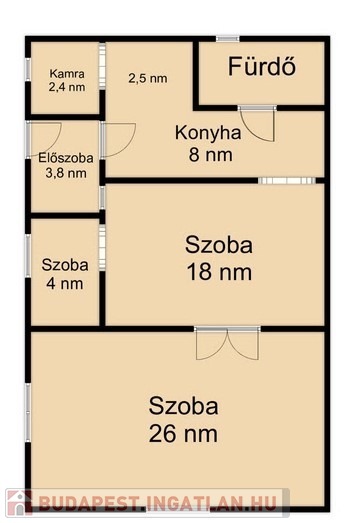 A ház első ízben 1930-ban épült beton alapzattal, és vastag falazattal. Az első 26 nm-es szoba utólag lett hozzá építve, beton födémmel és alapzattal. A belmagasság 2,7 méter. 2012-ben felújításon esett át az ingatlan. A ház kimondottan napfényes, világos.