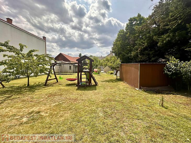 XV. KERÜLETBEN: KÖZPONTHOZ KÖZEL, CSENDES UTCÁBAN, JÓ ÁLLAPOTÚ, 75 M2, AMERIKAI KONYHÁS NAPPALIS, 2 SZOBÁS HÁZRÉSZ, 200 M2 KERTTEL, 13 M2 PINCÉVEL, 12 M2 TÁROLÓVAL, AUTÓBEÁLLÓVAL.