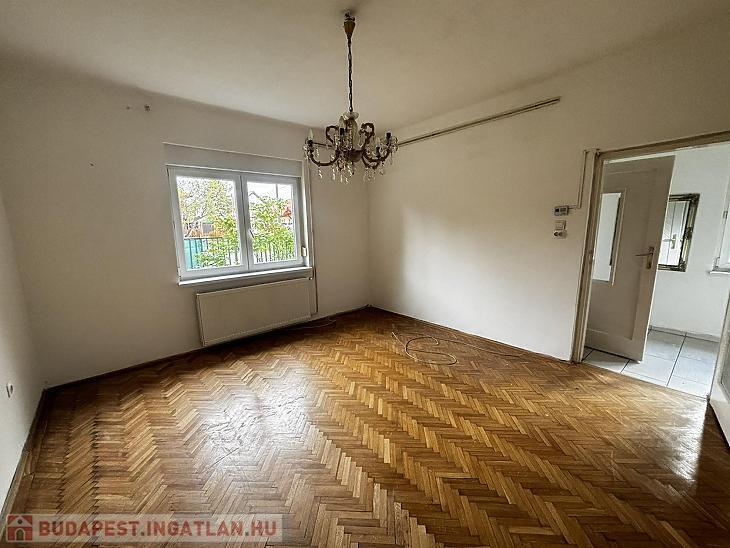 XV. KERÜLETBEN: KERTVÁROSI RÉSZEN, ELADÓ EGY KÖRBEJÁRHATÓ, 50 M2, 2 SZOBÁS, KÖZEPES ÁLLAPOTÚ CSALÁDI HÁZ, 350 M2 TELEKKEL,12 M2 TERASSZAL, AUTÓBEÁLLÓVAL.