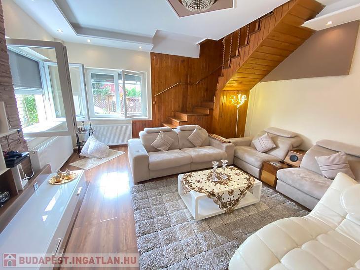 XVI. KERÜLETBEN: RÁKOSSZENTMIHÁLY EGYIK CSENDES UTCÁJÁBAN ELADÓ, EGY FELÚJÍTOTT, 130 M2-ES, 461 M2-ES TELEKKEL, 2 ERKÉLLYEL, TERASSZAL, GARÁZZSAL RENDELKEZŐ IKERHÁZFÉL!