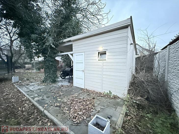 XVI. KERÜLETBEN, RÁKOSSZENTMIHÁLY, EGYIK CSENDES MELLÉKUTCÁJÁBAN, ELADÓ EGY 64 M-ES, 2 SZOBÁS IKERJELLEGŰ CSALÁDI HÁZ, 450 M2-ES TELEKKEL ÉS NAGY TERASSZAL.