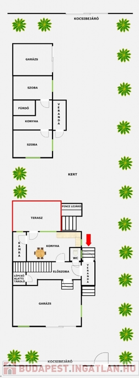 XVI. Rákosszentmihályon, a Szilas-pataknál, kitűnő közlekedés és ellátottság mellett, csendes, kellemes környezetben, erdő mellett, frissen aszfaltozott, térkövekkel szegélyezett zsákutcában (átmenő autóforgalomtól mentes), 80-as években jól megépített, dupla főfallal elválasztott, bruttó 181 m2-es, kétgenerációs ikerház, mely egy 124 m2 lakóterű, két szintes nagyobb és egy 35 m2 lakóterű kisebb ikerházból áll, 432 m2-es, lekerített, saját kerttel! Tartozik a nagyobbik házhoz ezenfelül még egy 15 m2-es, nagy, fedett terasz, ami alatt pince van és akár beépíthető is, valamint a kisebbik házhoz még egy 22,5 m2-es saját garázs. A telek két utcáról, két kapubejáróval rendelkezik, így a két ház külön kapuról megközelíthető! Mindkét ház jól megépített, lakható állapotú, de a mai kor igényeinek nem felel meg. Az ingatlan saját, egyedi mérőórákkal rendelkezik (víz, villany, gáz)! Az M0, M3, Pólus és Ázsia center, Lidle, Spar könnyen megközelíthető! Pékség, játszótér, iskola, zöldséges, dohánybolt, Spar expressz, lottózó, fagyizó, posta, gyógyszertár, festékbolt, barkácsbolt, kertészeti bolt, víz-gáz szerelvénybolt stb... rövid sétatávolságon belül! Busz 2 perc séta, amivel Örs vezér tere 20 perc alatt elérhető. A szomszédság kiváló! Az ingatlan rugalmasan megtekinthető! Irányár: 116,9 M Ft.