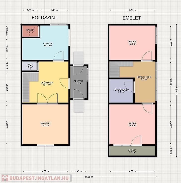 Az ingatlan praktikus elrendezésű a földszinten tágas, világos nappali, külön konyha–étkező és spejz található.