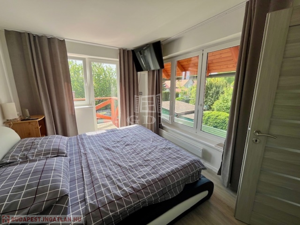 Az ingatlan modern kialakítású, és kiválóan illeszkedik a környezet kertvárosi jellegéhez.