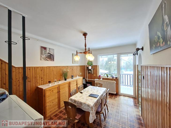 A földszinten tágas nappali, étkező, konyha, kamra, előszoba, fürdőszoba és erkély található. Az emeleten amerikai konyhás nappali, 2 szoba, fürdőszoba és erkély áll rendelkezésre. Az ablakok műanyag, hőszigetelt nyílászárók. A fűtést gázcirkó kazán, valamint vegyes tüzelésű kazán látja el. A ház fenntartási költsége igen kedvező.
