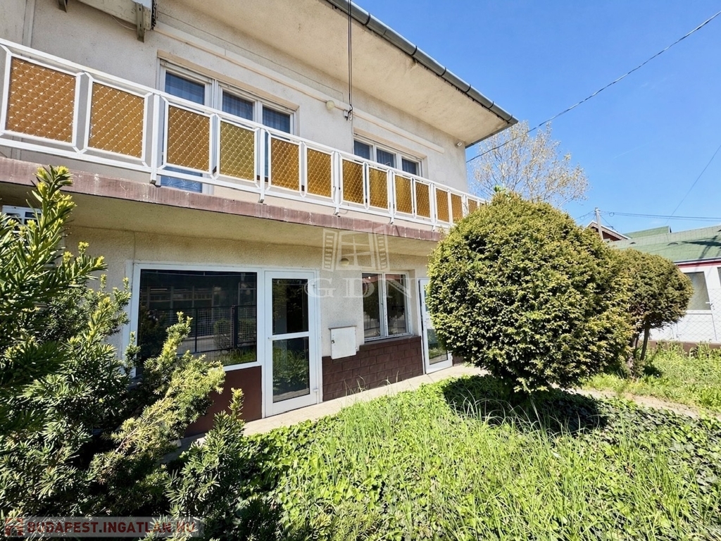 XVI. kerületben, Árpádföld szívében kitűnő ellátottság mellett, 504 nm-es összközműves telken 70-es években épült, 2 szintes, 164 nm-es lakóterületű, 5 szobás, valamint egy különálló részben felújításra szoruló, 43 nm-es összkomfortos 2 szobás melléképülettel bővített, így összesen 207 nm-es lakóterületű, 5+2 fél szobás, étkezőkonyhás, napos világos DK-i fekvésű, alacsony fenntartású, egyedi mérőórás, (2 db gázórával rendelkezik), dupla gázkazán fűtésű, jó állapotú TEHERMENTES, AKÁR AZONNAL BIRTOKBA VEHETŐ, ikerház fél, beépített gépesített konyhával, közvetlenül a fő épületből megközelíthető garázzsal, elektromos autó töltési lehetőséggel, gondozott kerttel rugalmas költözéssel eladó.