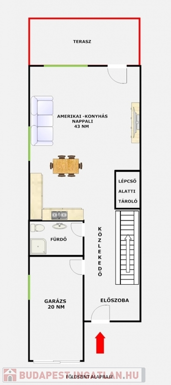A nagy méretű, 20 nm-es garázsba elektromos kapun és ajtón keresztül lehet bejutni.