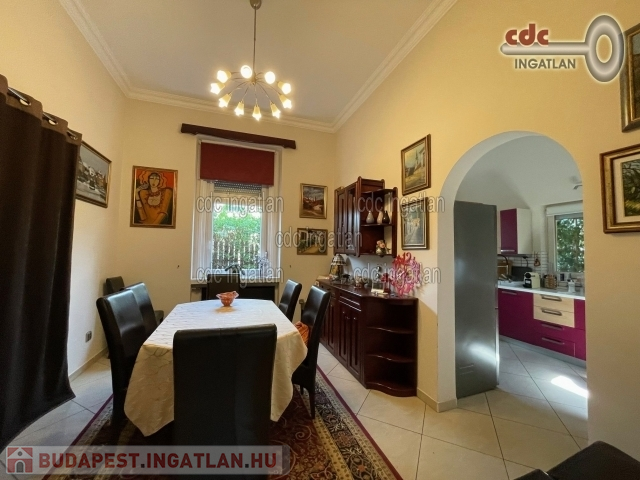 RÁKOSSZENTMIHÁLYON 179 m2-es, KÖRBENAPOZOTT ÖNÁLLÓ HÁZ. XVI. kerületben, Rákosszentmihályon eladó egy 179 m2-es, 2 szintes, nappali + 4 szobás, 2 fürdőszobás, önálló családi ház, mely egy 793 m2-es telken helyezkedik el. Az ingatlan folyamatosan karbantartott, kiváló esztétikai és műszaki állapotban van. Az alsó szinten egy 45 m2-es nappali, konyha étkező, fürdő és egy hatalmas előtér, az emeleten 4 szoba és egy fürdőszoba, mosókonyha és gardrób található. A vezetékek és a burkolatok 2005-ben lettek cserélve, a kazáncsere és a kémény bélelése 2022-ben történt. Az ablakok elektromos redőnnyel ellátott, több rétegű nyílászárók, az udvari fronton aluminium redőnyökkel. Az ingatlan riasztóval felszerelt. A hűsölésre nyáron egy 20 m2-es terasz ad lehetőséget. A locsolást fúrt kút könnyíti, az autóbeállást egy kétállásos garázs biztosítja. Az ingatlan tehermentes.