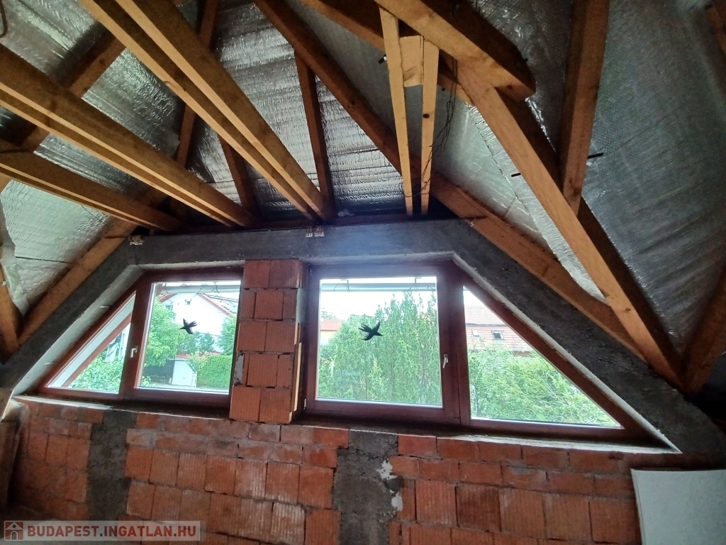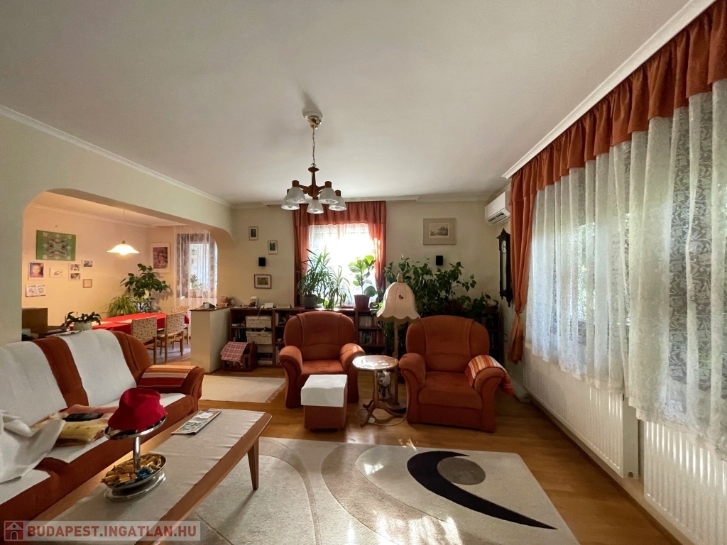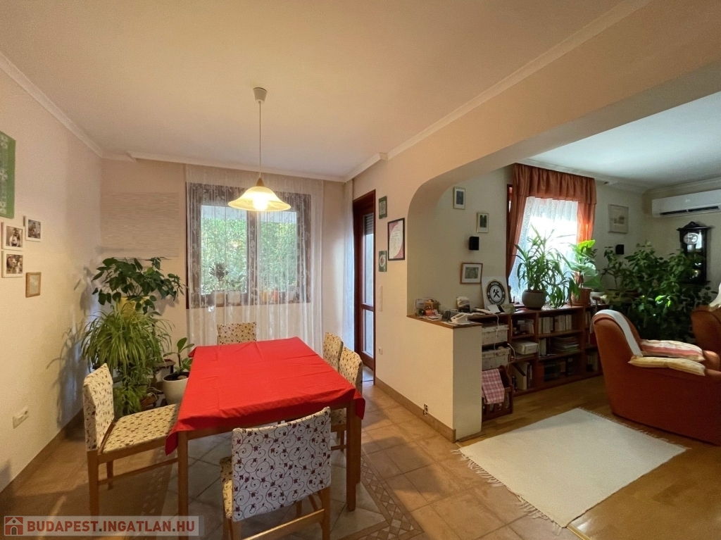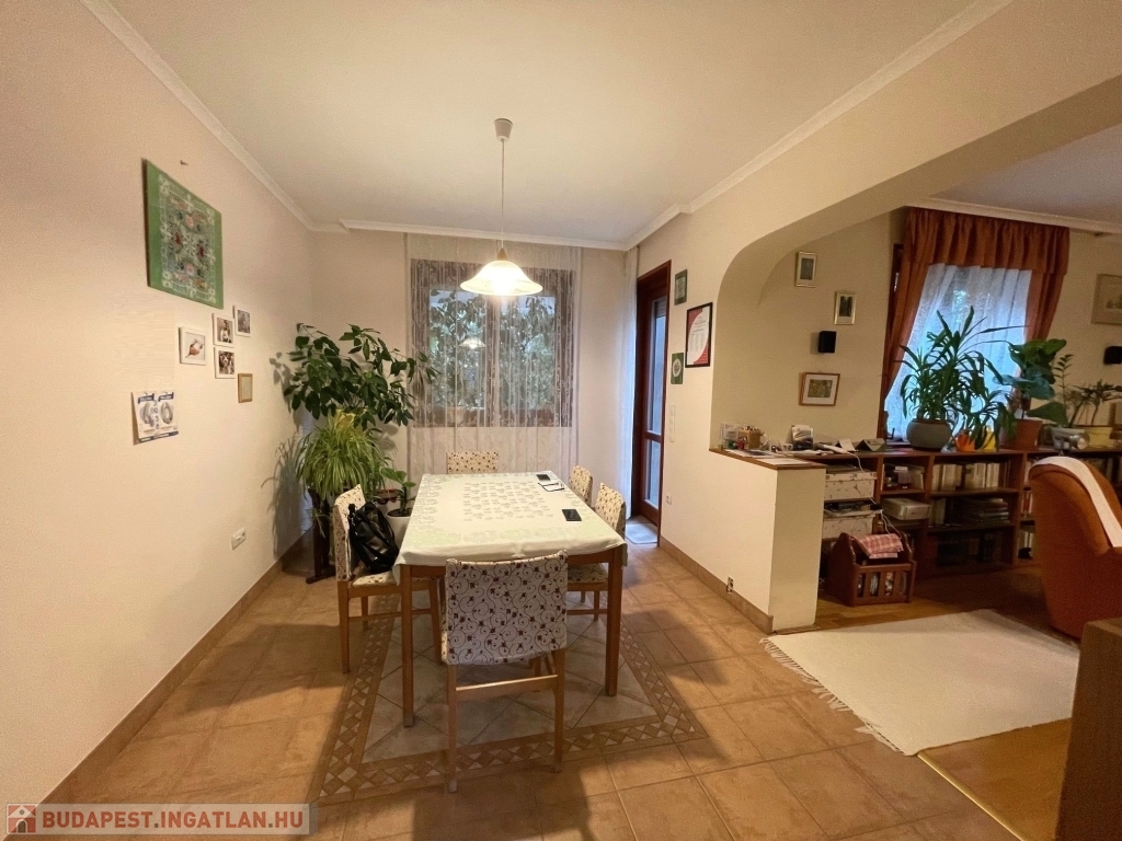 XVI. kerületben, Mátyásföld Petőfikert részén eladó egy 250 m2-es, 2003-as építésű önálló családi ház, mely egy 544 m2-es saroktelken helyezkedik el. A ház földszintje 95 m2, itt egy nagy nappali, egy étkező, konyha, két hálószoba, gardrób és egy fürdőszoba, valamint egy mellékhelyiség található. A fűthető alagsorban ( mely 42 m2 garázs, plusz 60 m2), egy két-állásos garázs, ezen kívül 2, akár szoba-hobbiszobaként használható helyiség, egy tároló és egy fürdőszoba található. A ház emeleti szintje 95 m2, ami befejezésre vár. Az áram, víz- és csatorna kiállások már itt is ki lettek alakítva. A ház jó állapotú, folyamatosan karbantartott, az egyedi nyílászárók két rétegű, hőszigetelt üvegei 2025-ben lettek kicserélve. A fűtést 3 éve olasz Immergas típusú kondenzációs kazán biztosítja, melyhez a kéménybélelés megtörtént. A melegburkolatú helyiségekben radiátor, a hidegburkolatú helyiségekben padlófűtés lett kialakítva. Az ingatlan déli-délnyugati fekvésű, körbe-napozott. A ház Porotherm 44-es téglából épült, a belső falak 30-as, illetve 10cm-es téglafalak. Az ingatlan 2 külön lakrész kialakítására alkalmas. Tehermentes ingatlan.