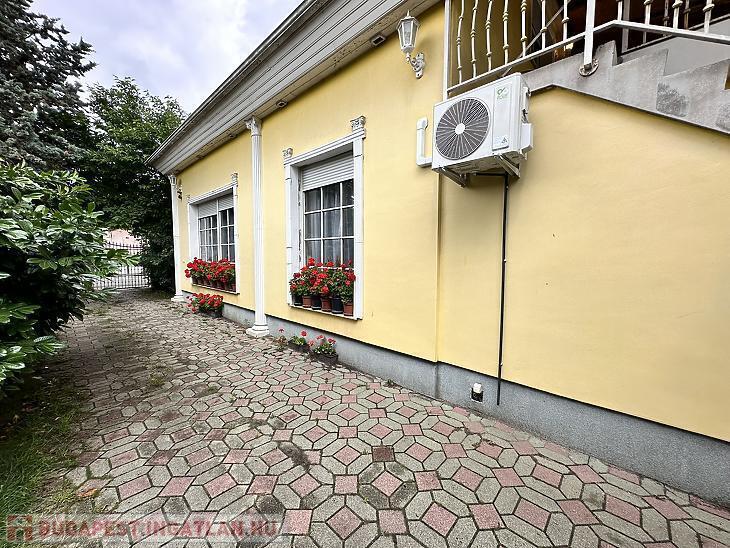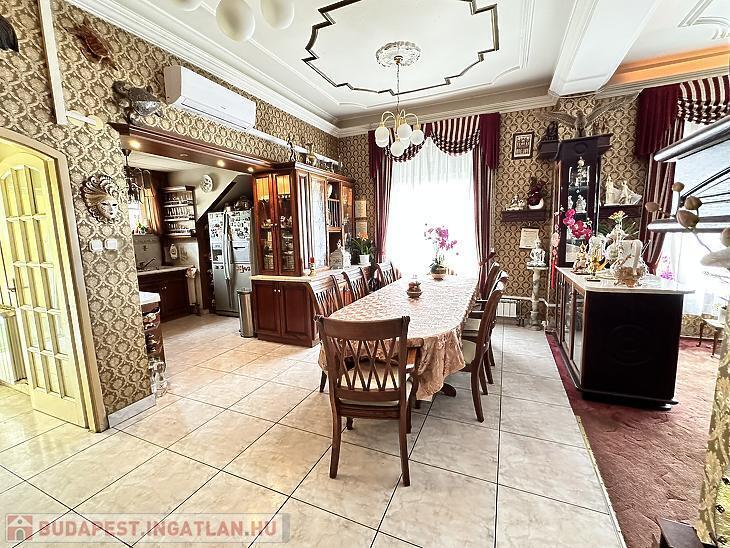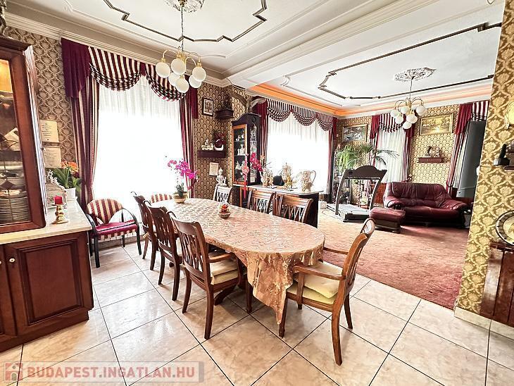 Ez a remek állapotú, 280 m²-es nagypolgári stílusú családi ház 1083 m²-es telken kínál tágas életteret és kényelmet, egy csendes, jól megközelíthető környéken, közel a tömegközlekedési és bevásárlási lehetőségekhez. Az ingatlan ideális választás lehet nagyobb családoknak, vagy akár két generáció számára is, hiszen az elrendezés könnyedén átalakítható.