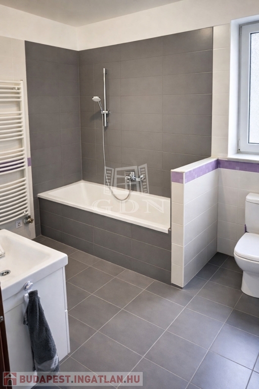 - Tágas fürdőszoba WC-vel és káddal