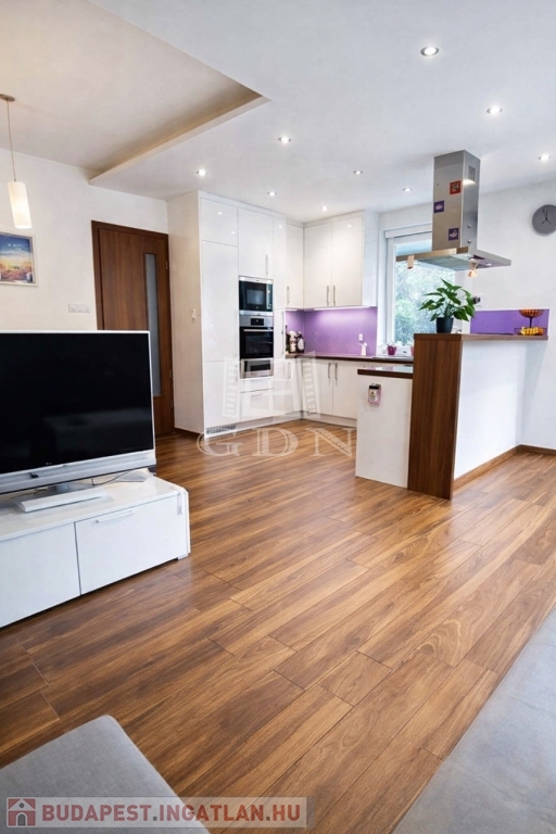 - Világos, délnyugati tájolású nappali–konyha–étkező