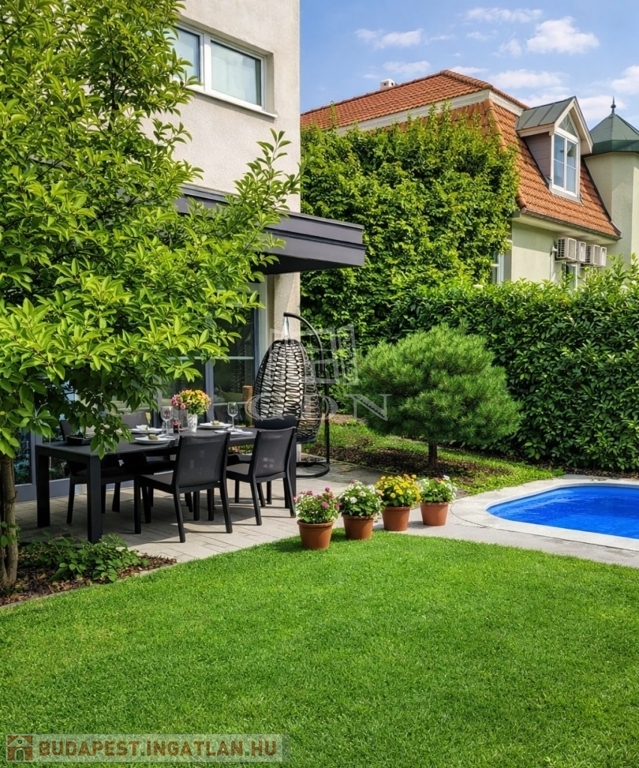 kiváló műszaki tartalom, átgondolt elrendezés, fűthető medencés kert és kitűnő lokáció egyben.
