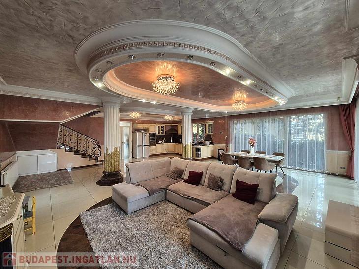 XVI. KERÜLETBEN: RÁKOSSZENTMIHÁLYON SZÉLES, CSENDES MELLÉKUTCÁBAN, ELADÓ EGY KÖRBEJÁRHATÓ, BETONFÖDÉMES, 300 M2-ES, 5 SZOBÁS, 2008-BAN ÉPÜLT CSALÁDI HÁZ, 570 M2-ES TELEKKEL.