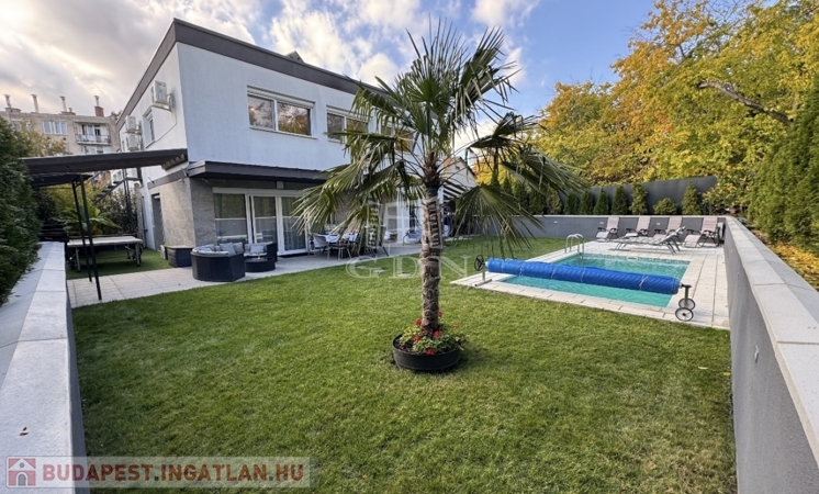 Sashalmon, a Kicsi utcában eladó egy 214 m²-es, prémium kivitelezésű, kétszintes ikerházfél két külön lakóegységgel – akár egybenyitható kialakítással.