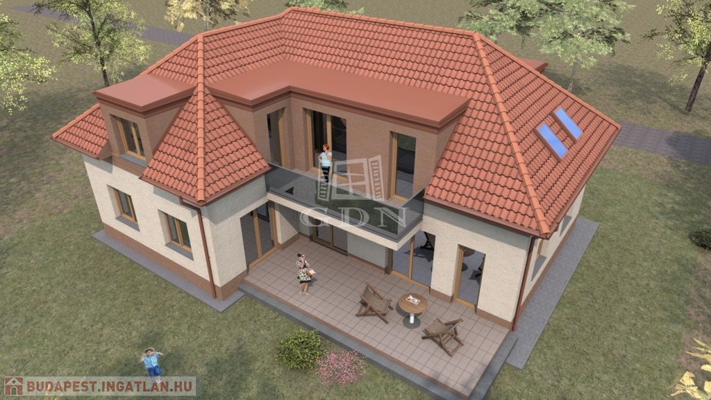 Budapest XVI. kerületében, Sashalom egyik legkedveltebb, csendes, kertvárosias részén kínáljuk eladásra ezt a korszerű, új építésű családi házat, amely egy 617 m²-es telken helyezkedik el, az Lke-1/XVI/SZ4 övezeti besorolásnak teljes mértékben megfelelően.