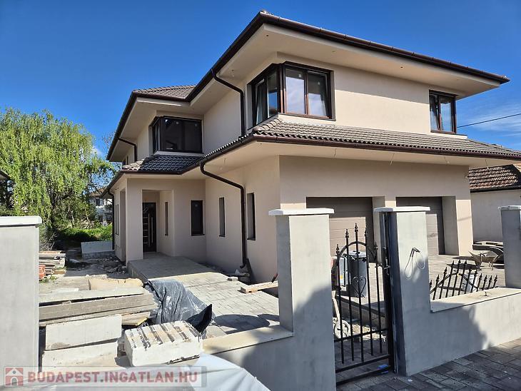 XVI. KERÜLETBEN, ÁRPÁDFÖLD CSENDES MELLÉKUTCÁJÁBAN ELADÓ EGY 300 M2-es, 6 SZOBÁS LUXUS ÚJ ÉPÍTÉSŰ KÖRBEJÁRATÓ OKOS OTTHON. 1078 M2-ES TELEKKEL, 2 AUTÓ SZÁMÁRA 40 M2-ES GARÁZZSAL, AUTÓBEÁLLÓKKAL, 2 TERASSZAL.