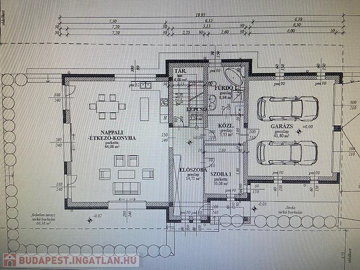 2 autó számára garázs, plusz 3-4 autó számára beállási lehetőség viacoloros beállóra.