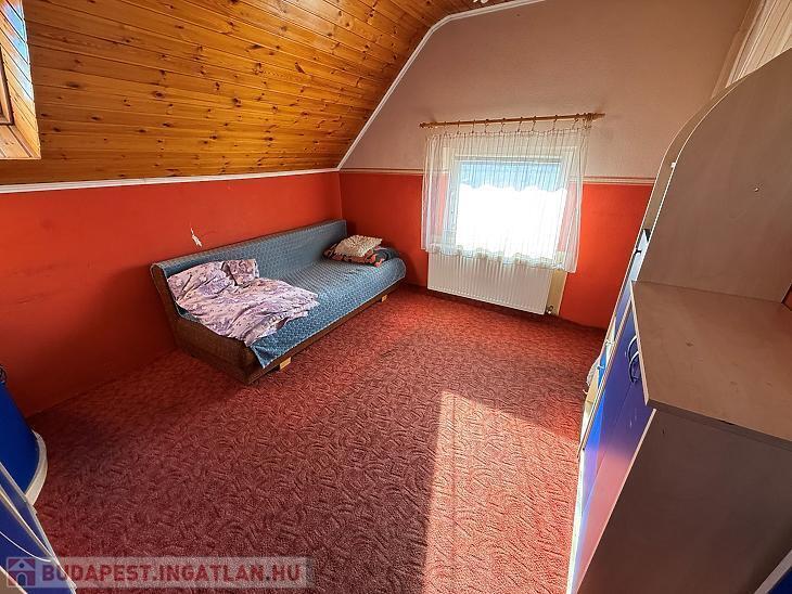 Emelet: 3 szoba, zuhanyzós fürdőszoba + mellékhelyiség, közlekedő, erkély.