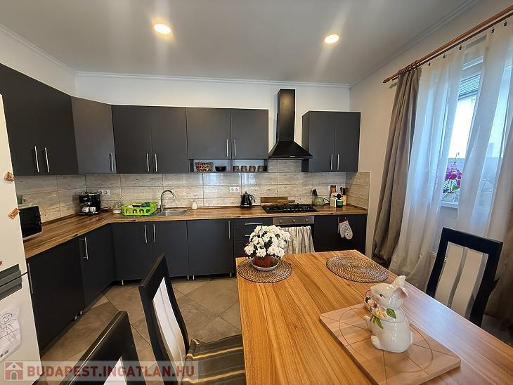 XVII. KERÜLETBEN: RÁKOSCSABÁN, CSENDES UTCÁBAN ELADÓ EGY 81 NÉGYZETMÉTERES, ÚJSZERŰ ÁLLAPOTÚ IKERHÁZFÉL, 371 NÉGYZETMÉTERES TELEKKEL ÉS KOCSIBEÁLLÓVAL.