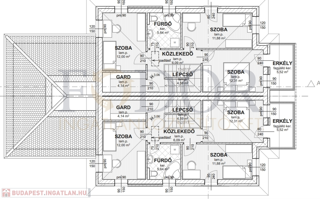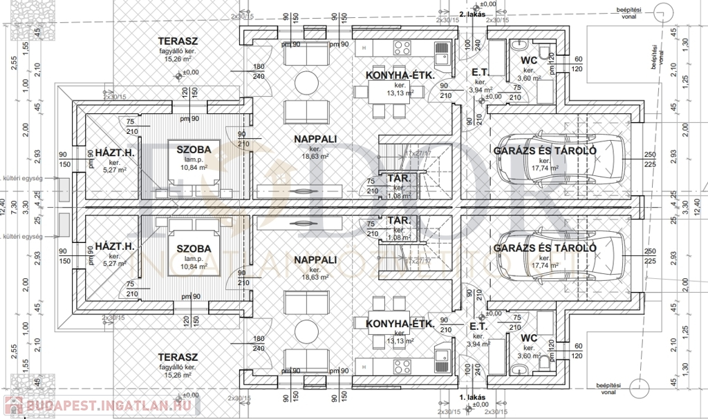 B jelű lakás bruttó 130 m2, 15 m2 terasz, 2,5, 3,8 m2 erkély, 400 m2 privát telekterület 139,9 Millió Forint