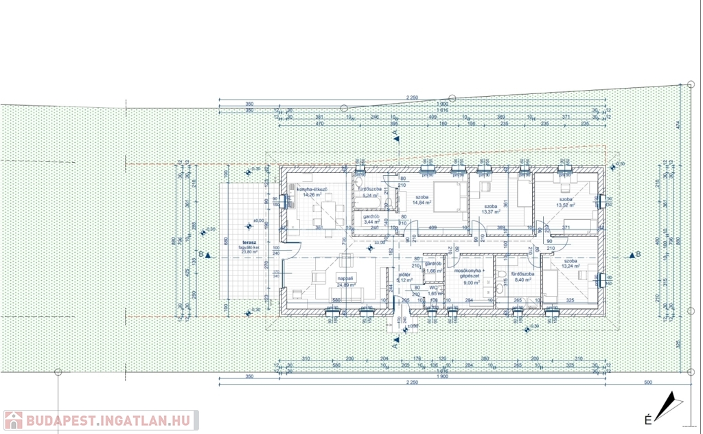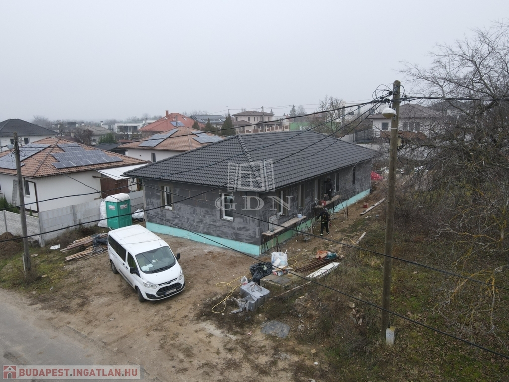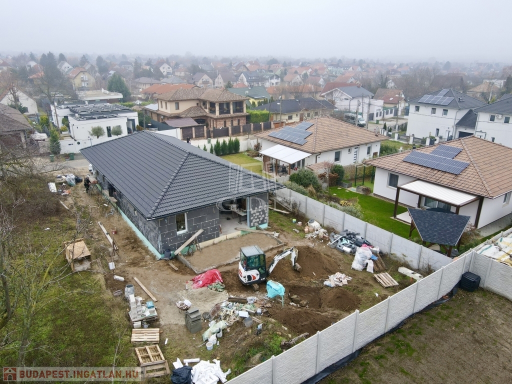 A XVII. kerület csendes, családi házas övezetében, az Emlék utca 58. szám alatt kínálom megvételre ezt a 641 m²-es telekre épülő, nettó 147 m²-es, modern és energiatakarékos új építésű családi házat, amelyhez egy 23,8 m²-es terasz is tartozik.