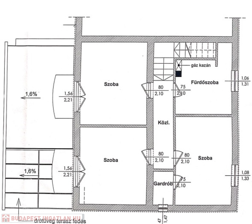 3 hálószoba (12,4 m² + gardrób, 13,6 m² felújítva 2019-ben, 13,6 m²)