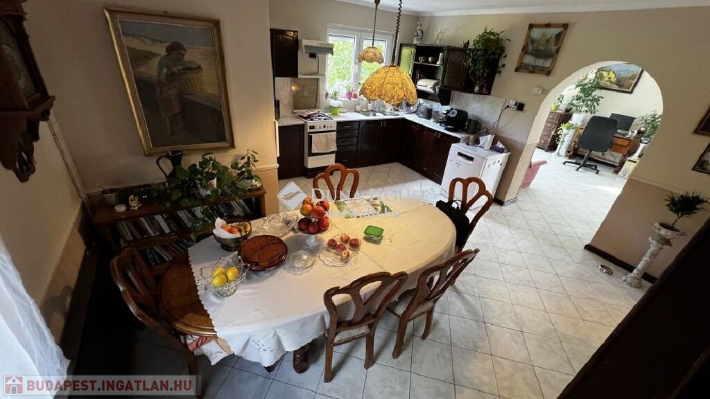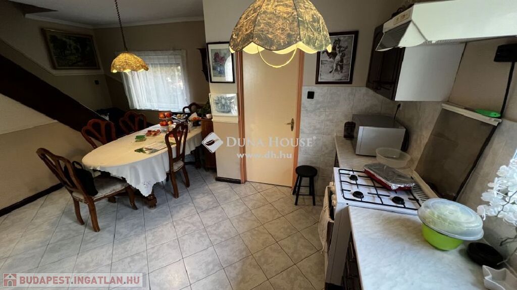 Megvételre kínálunk egy 226 nm-es családi házat, garázzsal, 728nm telekkel, beépített tetőtérrel a 17. kerület csendes nyugodt környékén.A ház 1986-ban épült, 1991 óta egy család tulajdonában van. Folyamatosan karbantartották, többször is felújították.A legutóbbi felújítás 2021-ben történt, nyílászárókat korszerű termoüveges ajtókra és ablakokra, illetve új (részben elektromos) redőnyök is felszerelésre kerültek.A ház elrendezése a lehető legideálisabb, tekintve hogy megvannak a tágas közös terek és a kényelmesen berendezhető különálló lakószobák is.A földszinten lévő folyosóról nyílik a szuterénlejáró, az étkezőből pedig az emeletre juthatunk egy igényes lépcsősorral.A nappaliból kilépve (szintén két éve felújított) félig fedett kerti teraszra érkezünk.A szuterénben ipari áram elérhető, így műhelyként, vagy egyéb vállalkozás üzemeltetésére is alkalmas lehet. Jelenleg tároló és mosókonyha funkciót lát el.Az épületen belül külön bejáratú garázs van, előtte pedig két autónyi parkoló került kialakításra új automata tolókapuval.Az elektromos hálozat légvezetékes betáplálású.A fűtést jelenleg gázcirkó látja el lapradiátorokkal.A melegvízről villanybojler gondoskodik, a mosogatónál külön kis bojlerrel.Az ingatlan riasztóval védett.A szuterén 68,9 nmA földszint 89 nm (+ garázs 11,5 nm, + terasz 37,4 nm)Az emelet 68,6 nmA kert rendezett, folyamatosan karbantartott.Amennyiben az ingatlan felkeltette érdeklődését, hívjon bizalommal.