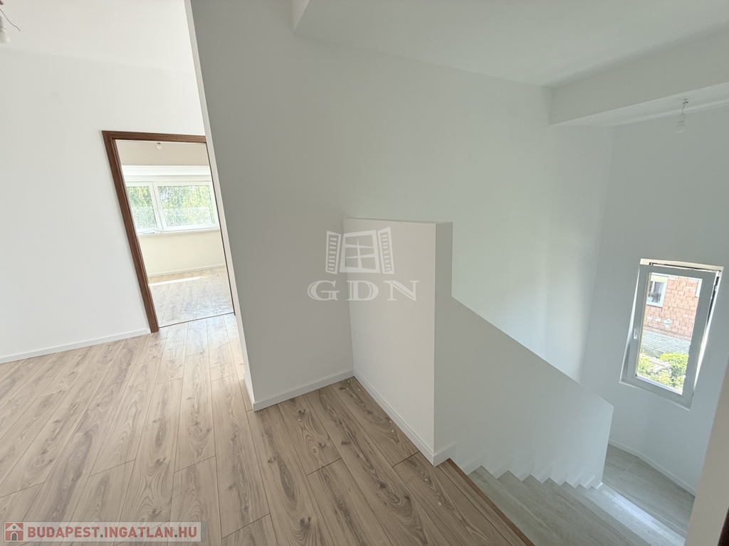 Budapest XVII. kerületében, Rákoscsaba egyik legnyugodtabb részén, a Mezőcsát utcában kínálunk megvételre egy teljeskörűen felújított, háromszintes családi házat, amely kizárólag a főfalakat és a tetőszerkezetet őrzi az eredeti állapotából – minden más újraépítésre került az idei évben, kiemelten magas műszaki színvonalon.