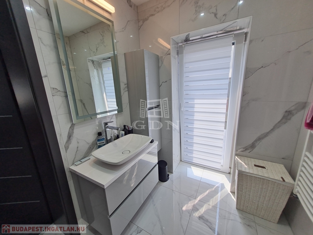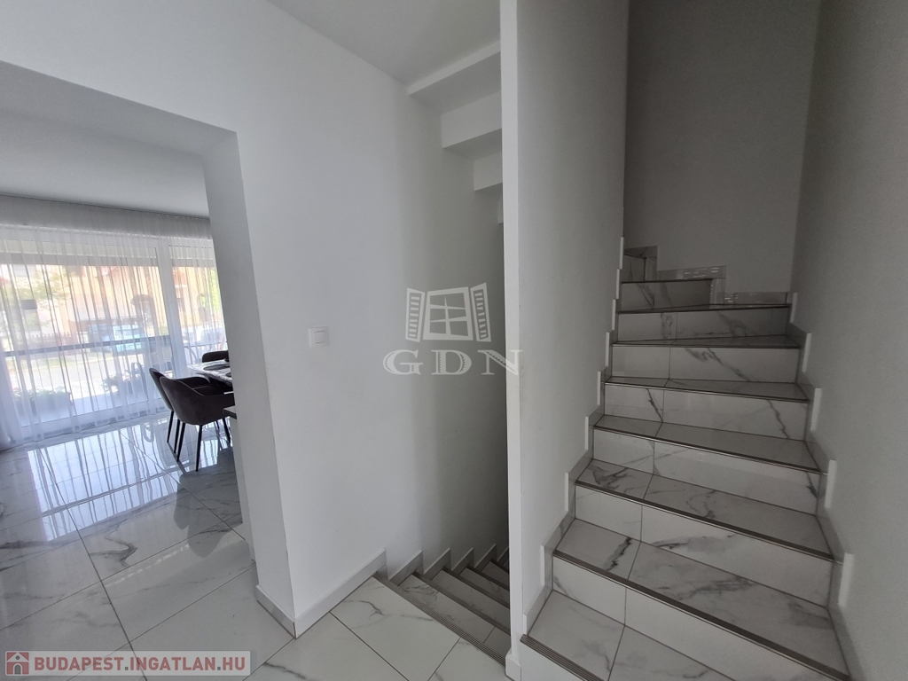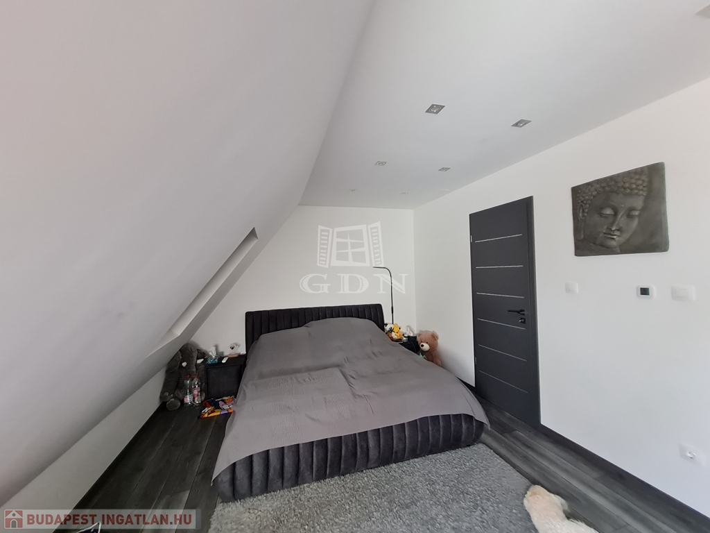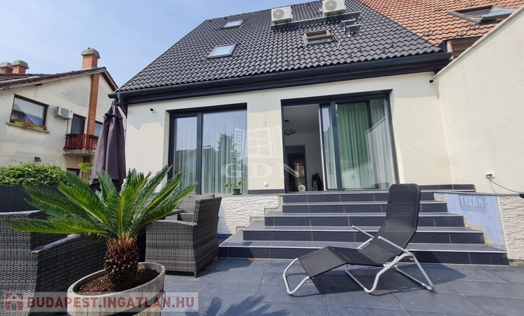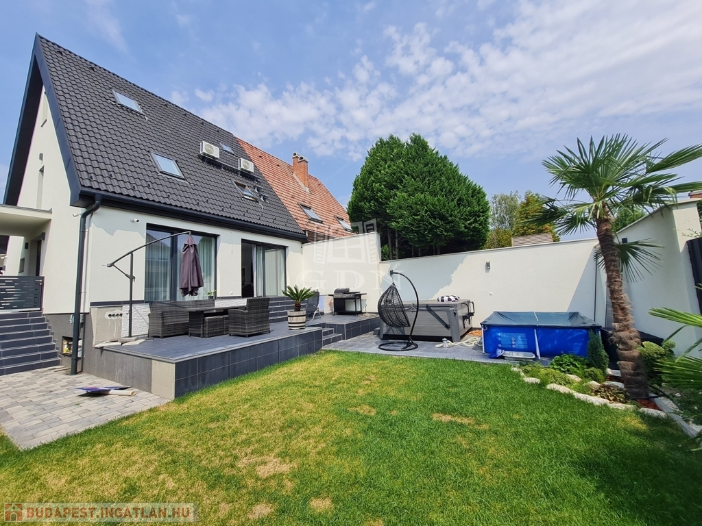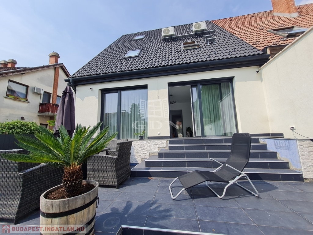 Budapest, XVII. kerületében a Madárdombon eladó egy 4 szintes, bruttó 233,88 m² fűtött, és 158 m² nettó területű 1 + 3 szobás, és 5 fürdőszobás, GARÁZSOS, ÚJSZERŰ állapotú, LUXUS kategóriájú iker fél.