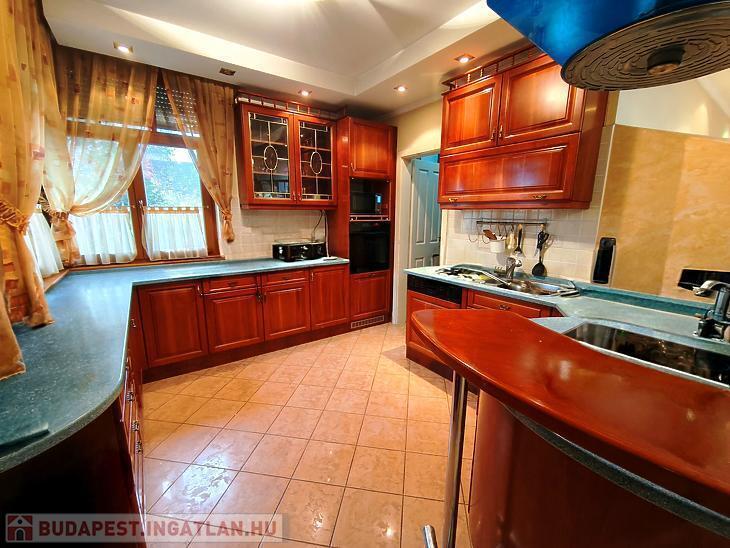 Földszint: 4 szoba, amerikai konyhás nappali + étkező, 2 fürdőszoba + mellékhelyiség, külön mellékhelyiség, gardrób, közlekedő, terasz.