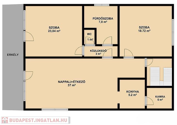 ELRENDEZÉS: 2 szoba, étkezős nappali, konyha, zuhanyzós + kádas fürdőszoba, mellékhelyiség, 2 erkély, kamra.