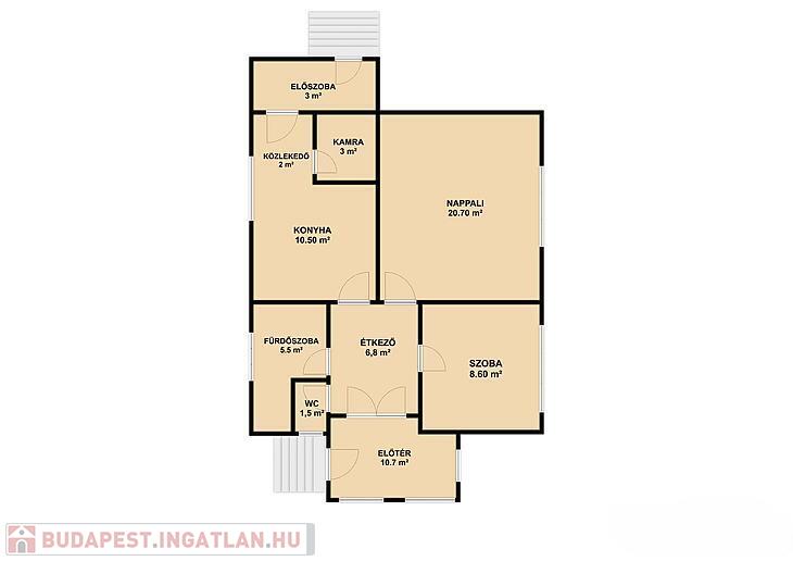 ELRENDEZÉS: nappali, szoba, előtér, fürdőszoba, mellékhelyiség, kamra, előszoba, pince.