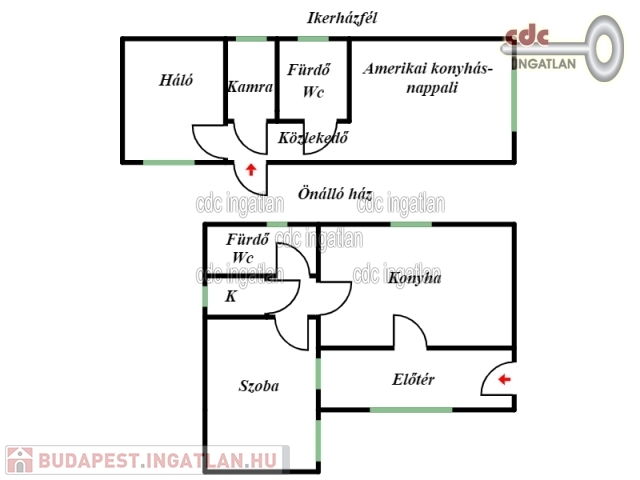 Eladó egy kb. 450 m2-es telken lévő, 55 m2-es ikerház és egy 45 m2-es önálló ház. A nagyobbik ikerház fél 2018-ban teljeskörű műszaki és esztétikai felújításon esett át. Külseje 10 cm-es szigetelést kapott! Itt kombicirkó fűtés került kialakításra és a nyílászárók cseréje is megtörtént. Egy amerikai konyhás nappali és egy külön nyíló tágas hálószoba, ablakos kamra és ablakos zuhanyzós fürdő található. A kert hátsó részében egy kisebb, szoba-konyhás kis felújítandó házikó található, gázcirkó fűtéssel. A kert gondozott. Az ingatlan jogilag rendezett, minden mérőóra szét van választva a szomszédtól, az ingatlan tehermentes! Parkolás csak az utcán lehetséges! Tömegközlekedéssel a 176 E és a 198-as busszal közelíthető meg. Várom hívását a hét bármely napján.