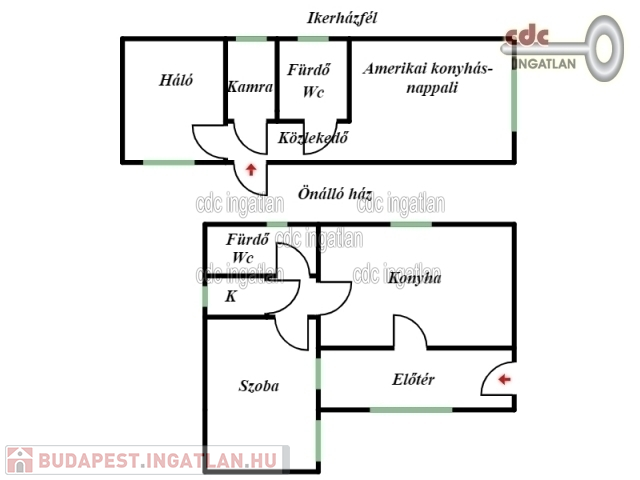 Eladó egy kb. 450 m2-es telken lévő, 55 m2-es ikerház és egy 45 m2-es önálló ház. A nagyobbik ikerház fél 2018-ban teljeskörű műszaki és esztétikai felújításon esett át. Külseje 10 cm-es szigetelést kapott! Itt kombicirkó fűtés került kialakításra és a nyílászárók cseréje is megtörtént. Egy amerikai konyhás nappali és egy külön nyíló tágas hálószoba, ablakos kamra és ablakos zuhanyzós fürdő található. A kert hátsó részében egy kisebb, szoba-konyhás kis felújítandó házikó található, gázcirkó fűtéssel. A kert gondozott. Az ingatlan jogilag rendezett, minden mérőóra szét van választva a szomszédtól, az ingatlan tehermentes! Parkolás csak az utcán lehetséges! Tömegközlekedéssel a 276 E és a 198-as busszal közelíthető meg. Várom hívását a hét bármely napján.