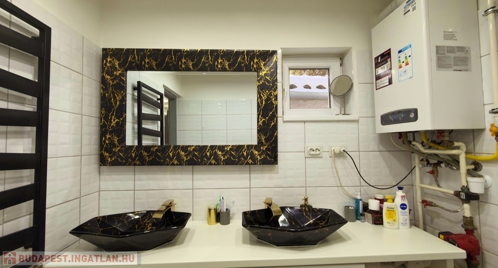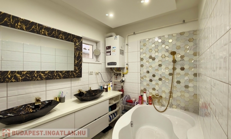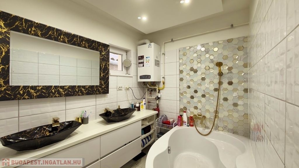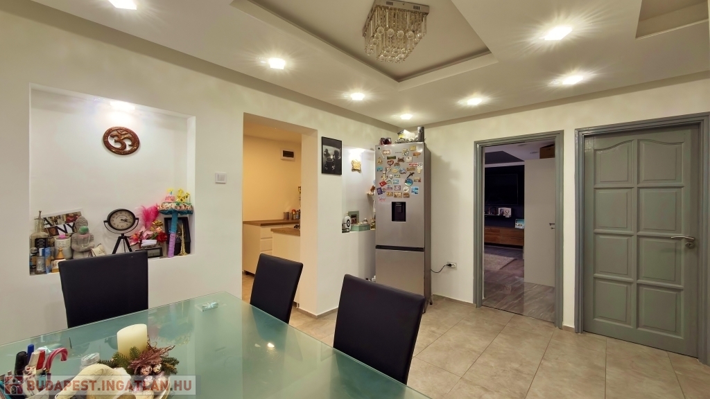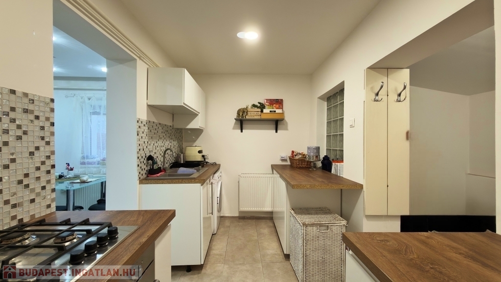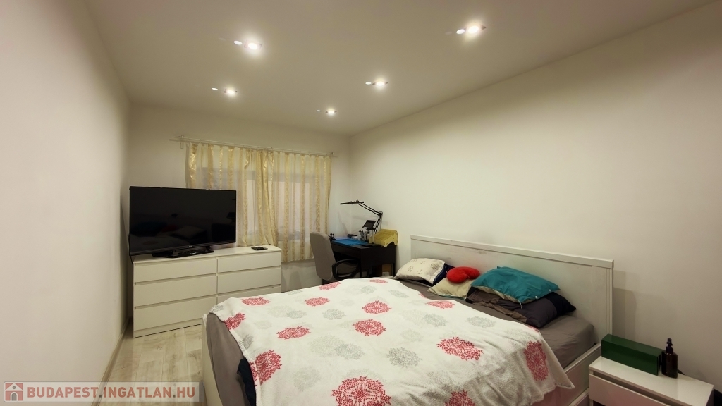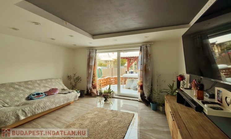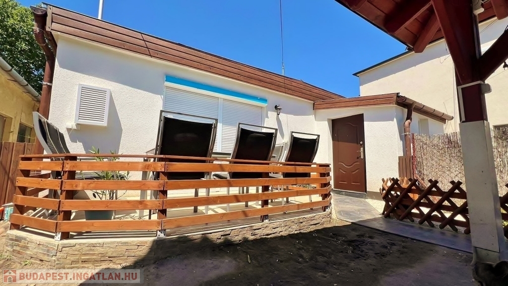 XVII. kerület, Akadémiaújtelepen kínálunk megvételre egy 165 m2-es telken lévő, 80 m2-es, 11 m2 terasszal rendelkező, nappali/étkező +2 hálószobás, klímával, redőnnyel felszerelt, felújított családi házat, melyhez tartozik egy fedett felszíni autóbeálló. A felújítás során korszerű, háromrétegű (3 kamrás) nyílászárók kerültek beépítésre, elektromos redőnnyel és szúnyoghálóval felszerelve. A villamos-, víz- és gázvezetékek teljes cseréje megtörtént. Az épület 10 cm vastag grafitos hőszigetelést kapott, illetve új tetőszerkezettel rendelkezik. Az ingatlan per- és tehermentes, rövid időn belül költözhető.