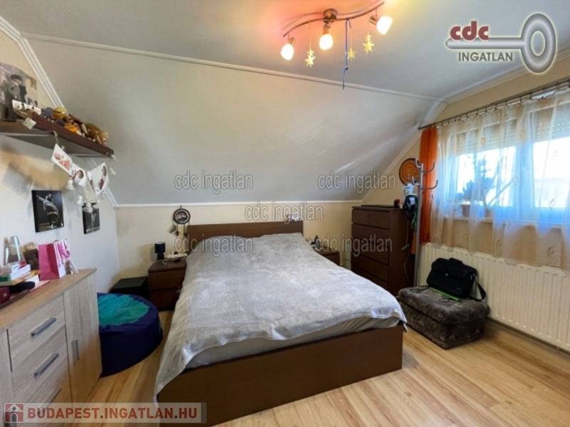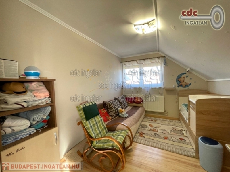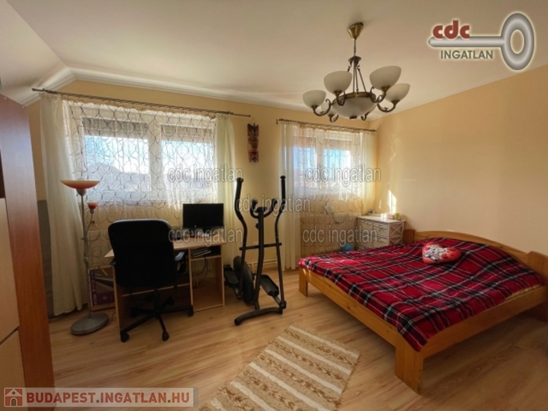 XVIII. kerületben, Ganz-kertvárosban kínálunk eladásra egy 160 m2-es, két szintes, körbenapozott, felújított önálló családi házat, mely egy 548 m2-es telken fekszik. A földszinten egy kényelmes, ablakos konyha, étkező, nappali, fürdő, az emeleten további 3 szoba és szintén fürdő található. Ezen felül, egy külön amerikai konyhás nappali és egy hozzá tartozó fürdő egy külön lakrészként lett kialakítva. A fűtést kombicirkó készülék biztosítja, a ház 15 cm-es szigetelést kapott. A villany- és gázfogyasztás a kedvezményes tarifán belül esik. A kertben egy 15 m2-es, tárolásra alkalmas kerti faház, szaletli, kerti sütögető lett kialakítva. Tárolásra egy 7 m2-es pincében szintén van lehetőség. A telek térkövezett részén akár 3 gépkocsi is kényelmesen tud parkolni, a beállást elektromos kapu könnyíti. A környék békés, csendes, családbarát. A közelben iskola, óvoda, bevásárlási lehetőség, a Market Central. Az ingatlan tehermentes, 1/1-es tulajdonú.